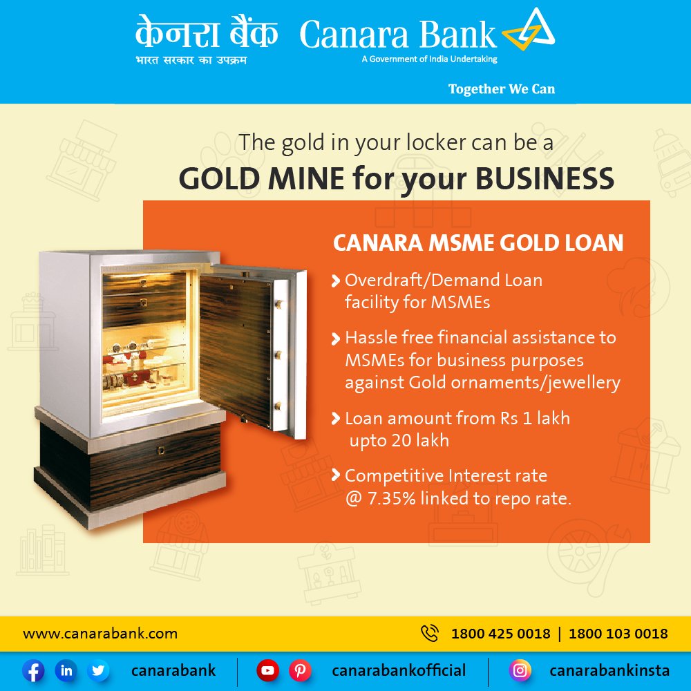 Avail canara msme gold loan from canara bank, for financial assistance up to 20 lakhs.